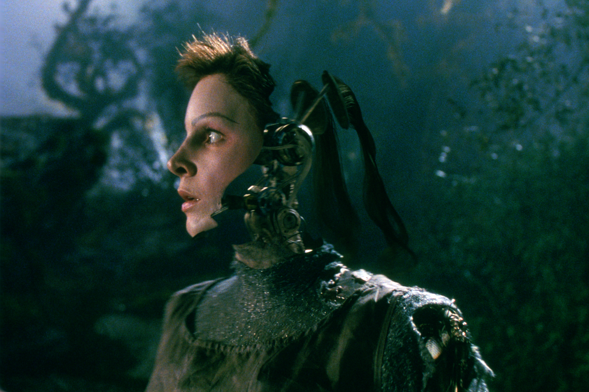<i>Artificial Intelligence</i> is the story of David (<b>Haley Joel Osment</b>), the first mecha (a futuristic term for a mechanised human being) designed with the ability to love. A couple whose son is in a coma "adopts" David to help them recover from their loss. Naturally, things do not go as planned, and David is forced to leave the mother (<b>Frances O'Connor</b>) he's been "imprinted" to love, and make his way in the world. Travelling with Teddy, a hi-tech stuffed bear, David escapes the Flesh Fair, where angry humans destroy mechas to "purge artificiality," and unexpectedly befriends Gigolo Joe (<b>Jude Law</b>), a robot designed to pleasure women. Joe agrees to help David in his quest to become human.